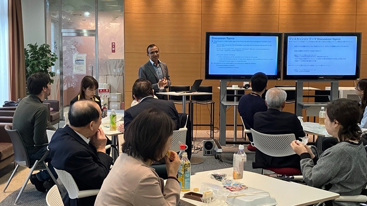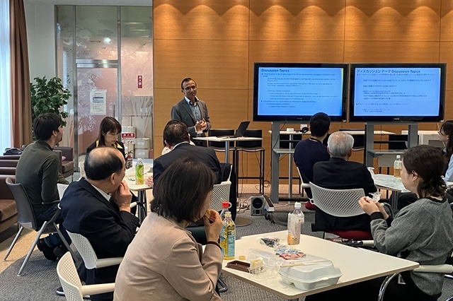 職員の意見や要望などを丁寧に汲み取り、推進室の活動に活かすことを目的として、「ダイバーシティランチ」を年に数回開催しています。ランチをともにしながら自由に意見交換を行うもので、これまでに各拠点で開催したほか、本部では外国籍職員を対象としたランチなどを行ってきました。理事長や管理職も参加し、毎回多くの参加者から活発な意見が寄せられます。こうした交流を通じて、より多様で働きやすい組織の実現に向け、取り組みを進めています。