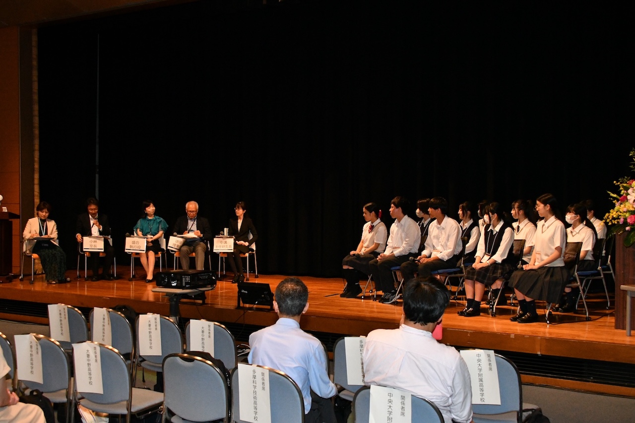 このセッションは、NICTのダイバーシティ推進の取り組みの一つであるSTEM人材育成活動の一環として実施され、3校12名の高校生と理事長を含むICT(情報通信技術)分野の第一線で活躍するNICTの研究者4名が一堂に会し、高校生の問題発見から生まれた研究発表を基に、現在の課題をどのように解決するかについて議論しました。