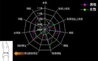 The numerical models were compared with the average physique of the Japanese people. Although both men and women showed certain deviations in the diameter of the naval-area abdominal thickness because of differences in posture during measurement of physique (numerical model: supine position; average value for Japanese people: standing position), the results show that the average difference between the numerical model and Japanese people’s average physique was below 5%, indicating that these numerical models coincide more or less with the average physique of Japanese people. (The closer to 1.0 the numerical figures in the diagram are, the more similar the two models are.)