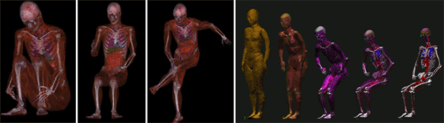 数値人体モデルの開発後に、医学監修作業や解剖学的データの解析を行ない、本人体モデルデータベースが、以前に開発されてきた人体モデルデータベースに比べて空間分解能や同定組織・臓器数に優れていることや、身体各部位の寸法や臓器重量も日本人の平均値に近い値を有していることを明らかにしてきました。