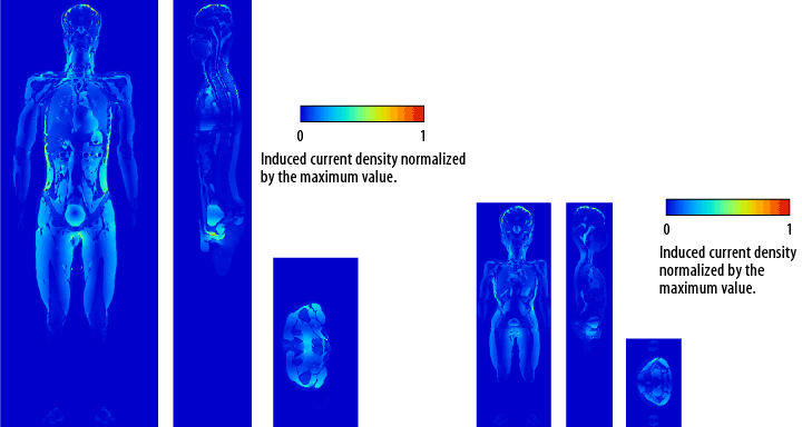 NICTでは、小児を含む様々な数値モデルに対して、中間周波数帯の磁界に曝露した場合の誘導電流密度の解析を行なっています。