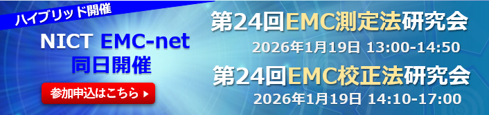 現在CISPR/SC-AでNICTが議論を主導している放射妨害波測定用アンテナの校正法や妨害波測定場の評価法、高周波測定器や電磁界プローブの校正技術について国際動向や技術的課題を紹介し、uncertainty評価や実際の校正における問題点などについて広く意見交換を行います。
