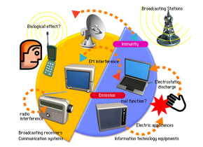 Electromagnetic environment is defined by total electromagnetic phenomena existing at a location. When we use an electric device or mobile phone for example, it generates an electromagnetic field in the surrounding space, which changes the electromagnetic environment. On the other hand, electronic appliances, radio receivers, and human bodies could also be affected by the surrounding electromagnetic environment. Electromagnetic Compatibility Laboratory performs R&D and services for establishing electromagnetic environment where we can enjoy safe and reliable use of various radio wave applications.