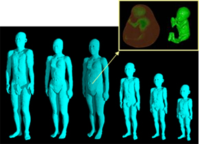 When considering the safety of radio frequency radiation exposure to the human body, it is necessary to evaluate the electromagnetic absorbed dose (Specific Absorption Rate or SAR) in the human body accurately. NICT has developed computational models of human anatomy and a database with electrical properties of biological tissues, and conducts detailed electromagnetic dosimetry.