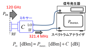 周波数変換器(ミキサー)が周波数変換を行うときに発生する損失(コンバージョン・ロス)を正確に決定することで、ミリ波帯の電力測定を可能にする技術の開発を行っています。