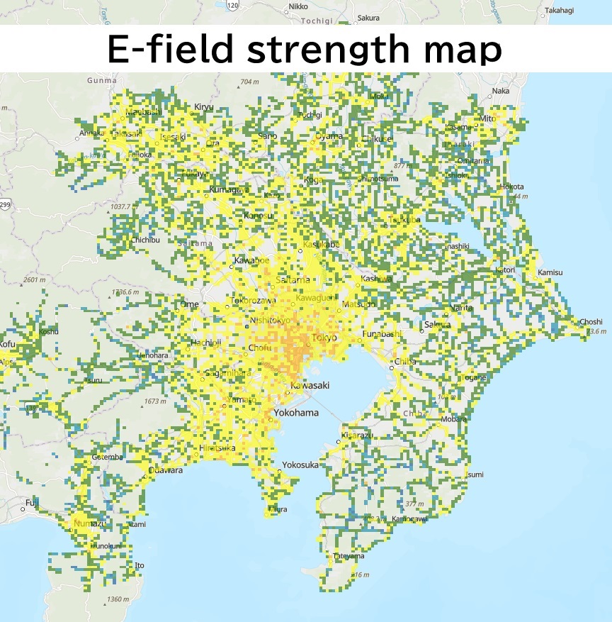 As one of the EMF exposure level monitoring, we have been measuring E-field strength over a wide area throughout Japan using a car mounted with E-field strength measurement equipment.(About measurement of E-field)