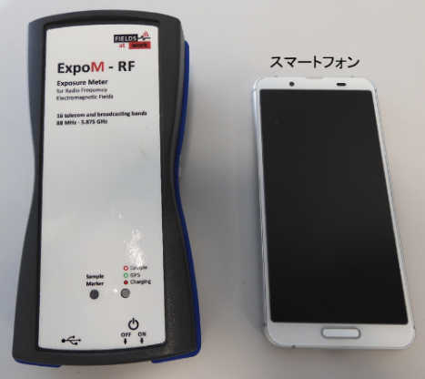 A small measuring device of about 300 g is carried close to the body to measure EMF exposure levels of daily life environments such as residence, outside of home, and class rooms in school.