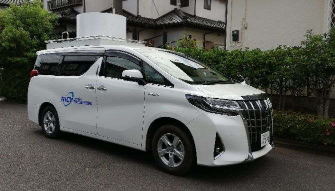 A measuring instrument is installed in a vehicle modified for measuring EMF exposure levels. Extensive measurements are carried out while the vehicle is moving or parked throughout Japan.