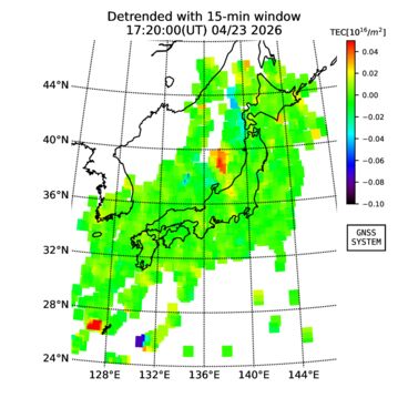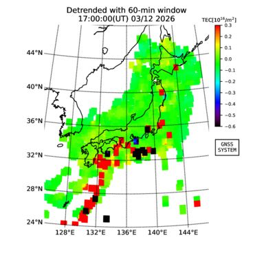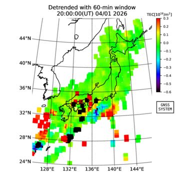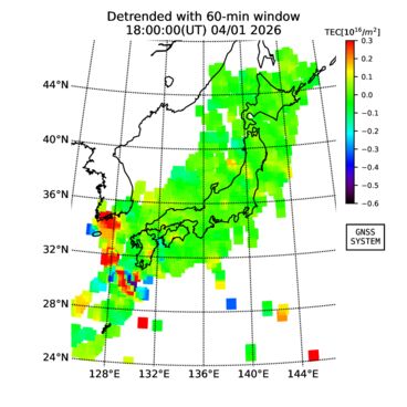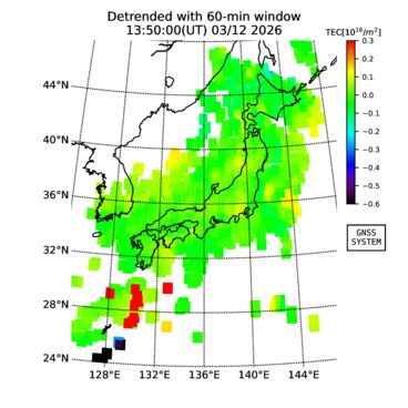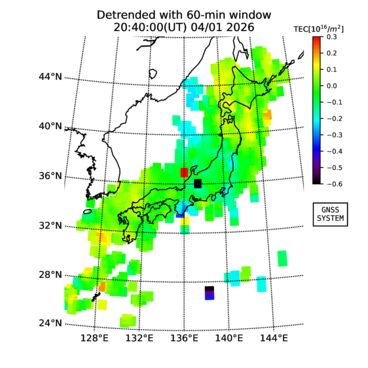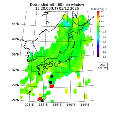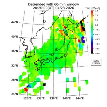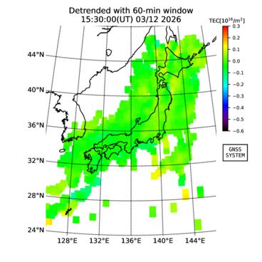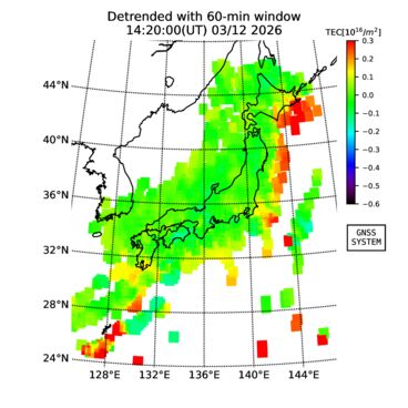 | 日時・時刻 | 全電子数(TEC) | TEC変動成分 (60分以下) |
